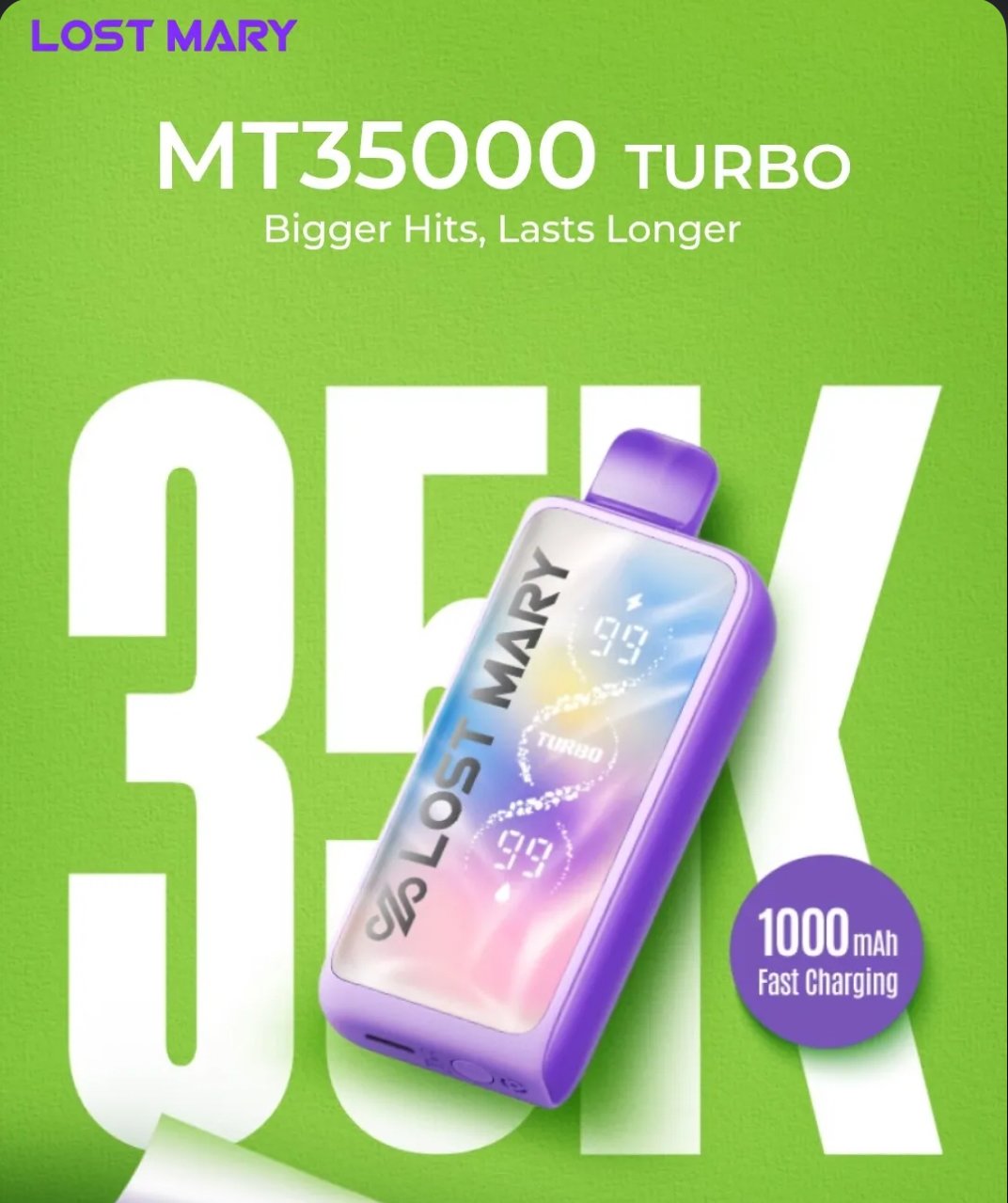 The Lost Mary MT35000 Turbo stands out with its slim profile, smooth edges, and modern design that fits comfortably in your hand or pocket. Built for both form and function, it features a Blend-In Smart Display that stays hidden until you take a puff—conserving battery and keeping things discreet. With clear readouts for battery and e-liquid levels, smooth helix animations, and strong daylight visibility, it delivers smart tech in a sleek, understated package.